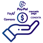 Cuenta con diferentes pasarelas de pago para mejorar la experiencia y comodidad de tus clientes. Tendrás más de 4 opciones para escoger, que se adapten a tus necesidades y de tus consumidores.